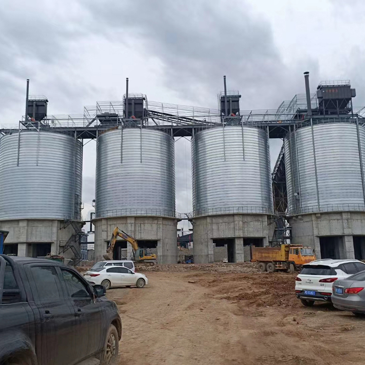 接收与清理设置在筒仓中央该形式筒仓一般采用对称排列,提升机井架固定,经过提升后的物料通过仓顶溜管进人筒仓。这种形式省去了仓顶输送设备和上通廊,从而节省了建造费用,缩短了建造工期。对于贮存时间要求较长的大型粮库,则应根据物料的流向、场地情况、工艺要求等合理地配置投料口、工作塔、烘干塔及玉树钢板仓的位置。国华钢板仓介绍了这几种常见的进料形式,实际中可将各种形式相互组合,相互渗透,根据实际情况合理搭配,灵活选用。